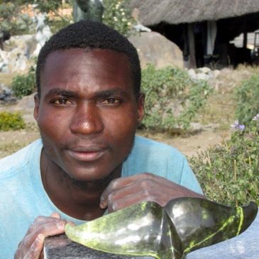 Phillip Tawarimira was born on the 3rd of October 1989. He did his primary education at Sabvure Primary School in Nyanga district under Chief Katerere, he went further to secondary education at Nyakomba Secondary School in Nyanga again were he just did form one for just first term. He transferred to Muziti Secondary School in Rusape were he completed his Ordinary Level and he moved on to Sanzaguru High School for Advanced Level. After completion of advanced level I began to be interested with art. His interest in stone sculpting was ignited in 2014 while he was working with his uncle Tafadzwa Sachiwo as his assistant. Tafadzwa carves mostly elephants in different kind of hard stones, he chose to start by carving whale tails through the assistance of his friend Emmanuel Madzivanyika, who carves whale tails and tortoise mostly. He loves to work on hard stones like springstone, opal stone, verdite stone, and leopard stone among other types of hard rocks. His art work has been sold all over the world. His ambition is to participate in some exhibitions and workshops both local and international ones, as well as to be a teacher of upcoming generations. Besides stone sculpting he likes watching football.